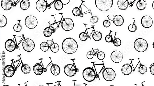 A black-and-white image of bikes on white backgrounds