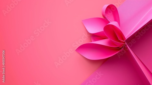 A tight shot of pink paper featuring a big flower at its upper part and a smaller one below