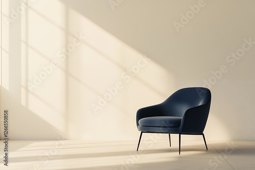 ミニマルな空間に映えるネイビーブルーのエレガントチェア | Elegant Navy Blue Chair in Minimalist Space