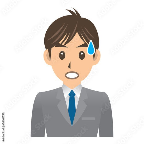 businessman, surprised, sweat, puzzled, man, man, people, man, person, japanese, waist up, expression, emotion, icon, symbol, character