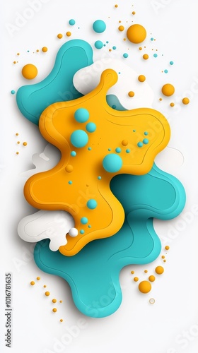 A blue, yellow, and white abstract background with bubbles; beneath, bubbles in same colors