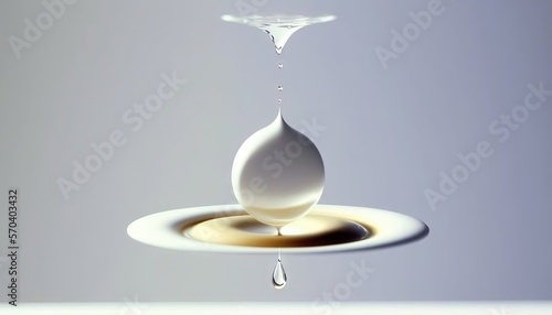 a drop of water falling into a puddle of liquid on a white surface with a light gray back ground and a light gray back ground. generative ai
