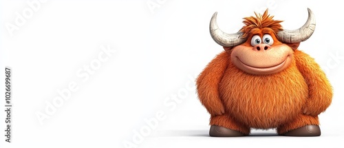 A furry creature, close-up It sports horns atop its head and proudly displays a broad smile