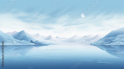 a large body of water with a mountain range in the background and a moon in the sky above the water. generative ai