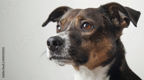 A portrait of a pet, the white backdrop bringing out the details and personality of the animal.