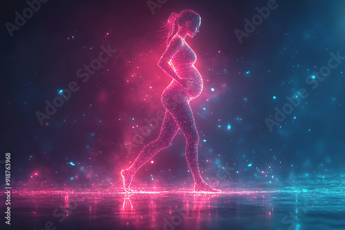 pregnant, woman, exercising, geometric, line, shape, glowing, dot, modern, abstract, fitness, pregnancy, movement, dynamic, art