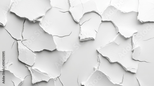 a white wall with a lot of cracks in it, creating a 3D effect The cracks are jagged and uneven, giving the wall a textured look The white color of the wall stands