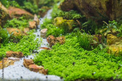 aquarium tank with a variety of aquatic plants.