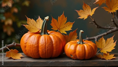 table, seasonal, fall, autumn, pumpkin, tabletop, decoration, harvest, decor, leaf