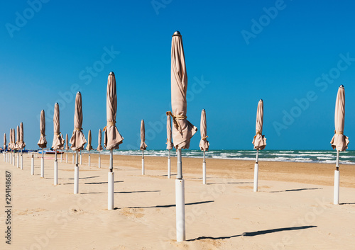 beach, sea, sky, beach umbrella, summer, sand, blue, nature, travel, nobody, water, coastline, coast, sun, shore, umbrella, empty, landscape, vacation, background, resort, sunny, tour tourism, view