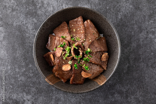 牛カルビ焼肉丼 俯瞰  Beef short rib yakiniku bowl