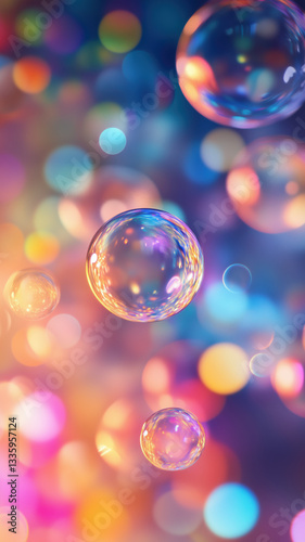 : Bright, colorful bokeh background featuring soft bubbles that shimmer and reflect light, perfect for a dreamy wallpaper.