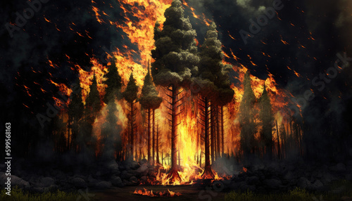 generative, ai, smoke, flames, forest, burn, nature, disaster, natural, fire, wildfire, danger, destruction, tree, hot, heat, wood, environment, ecology, emergency, damage, burnt, wild, red, background, orange, dry, outdoors, summer, landscape, night, forest fire, grass, bushfire, land, blaze, ash, sky, plant, field, mountain, environmental, black, burning, destroy, scene, deforestation