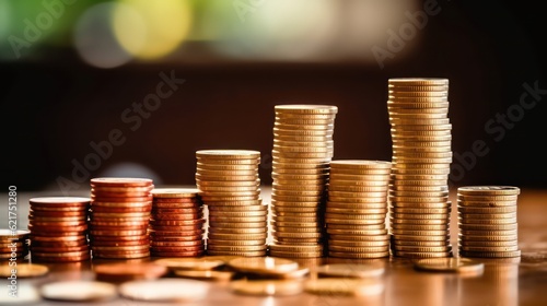 Business Finance and Investment with Financial Graphs, Coin Stacks, and Economic Growth