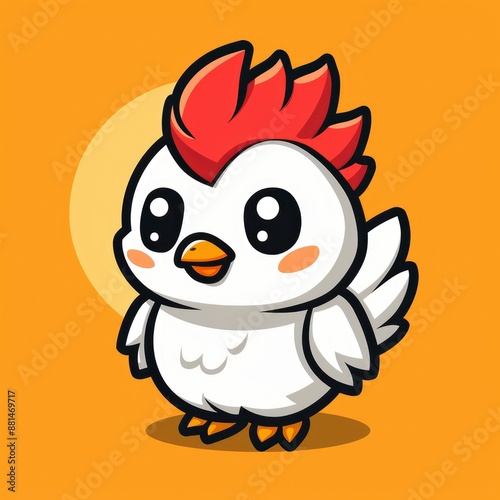 cute rooster logo, simple flat, design with red and white feathers, sunrise shape against a yellow background, minimalist, color blocks