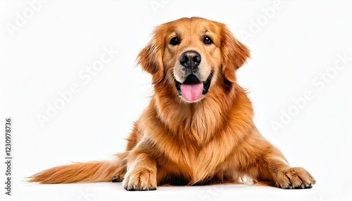 Happy sitting and panting Golden retriever dog looking at camera