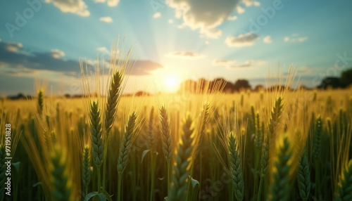pastoral, crop, landscape, harvest, sky, rural, ray, gold, agriculture, grain, nature, wheat, sun, calmness, field, summer, horizon, cloud, sunset