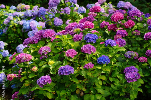 Hydrangea flowers - Hydrangea macrophylla - Beautiful bush of in a garden