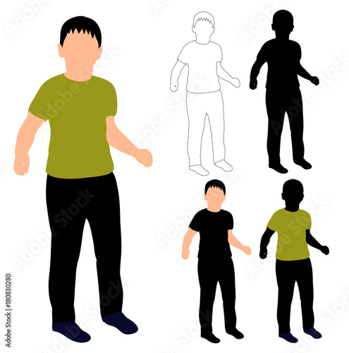 isolated silhouette little boy, sketch of child, flat style