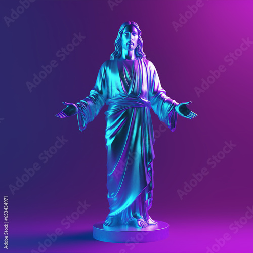 Jesus Christ statue holographic ilustration