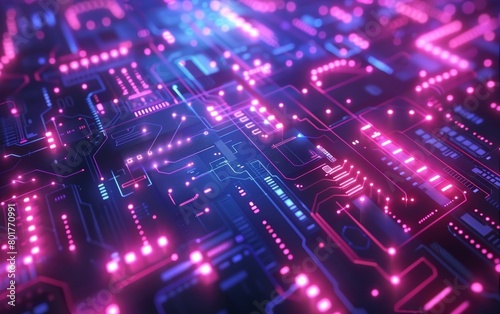 Loop of Neon Design on Abstract Technology Background / 4k animation showcasing a neon design with ly looping digital LED lights on a technology-themed background