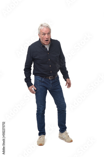 man, surprise, white, background, isolated, people, adult, casual attire, person, jean, looking away, looking, open, mouth, concept, shocked, emotion, thinking, face, full, photogenic, happy, length, man, proud, shock, male, gesture, 1, studio, thoughtful, cheerful, expression, success, joy, sneaker, front, view, caucasian