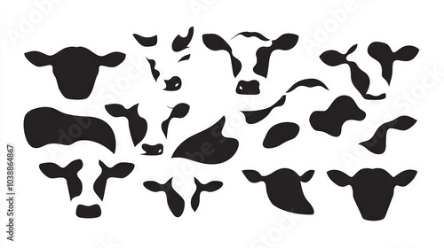 Monochrome photo of a cow's head with other cow shadows on white background