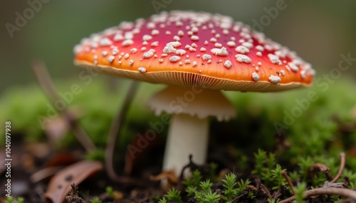 Natures vibrant palette A closeup of a red and white spotted mushroom