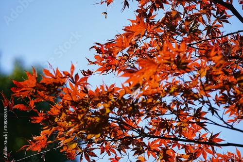tree, autumn, red, leaf, blue, maple, leaf, yellow, bright, colourful, beautiful