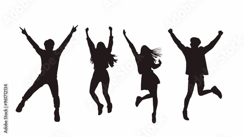silhouette, modern, man, woman, celebrate, full, body, white, background, vector, illustration, people, group, team, success, happiness, victory, joy, standing, diverse, minimalistic, business, casual attire, corporate, young, adult, teamwork, oneness, abstract, design, digital, graphic, black, simple, clean, cheerful, dynamic, energetic, positive, festive, creative, outline, silhouette, figure, blank, minimal, achievement, expressive