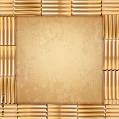 square brown dry bamboo stems frame with old paper or canvas.