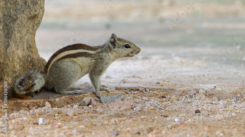 Three-striped palm squirrel resting in the shade