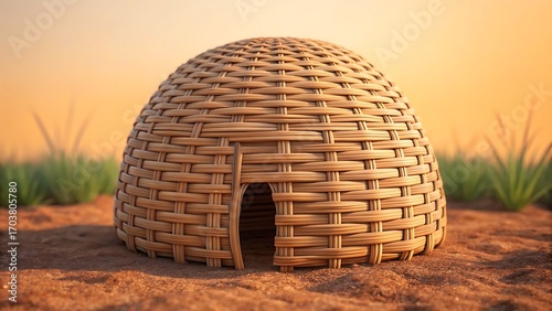 : Traditional woven hut made of natural straw material in rural village