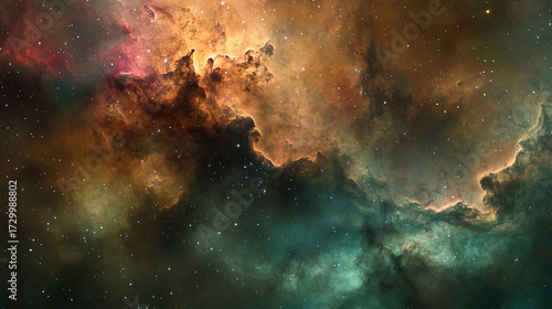 nebula, dance, dust, star, illuminated, watercolor, magenta, teal, amber, serene, cosmic, scale, graceful