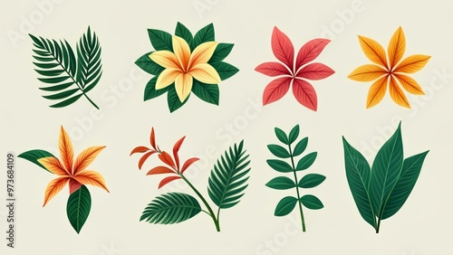 tropical, graphic, leaf, vector, garden, colourful, plant, botanical, pattern, motif, art, design, flower, floral, decoration, nature, botany, illustration, organic