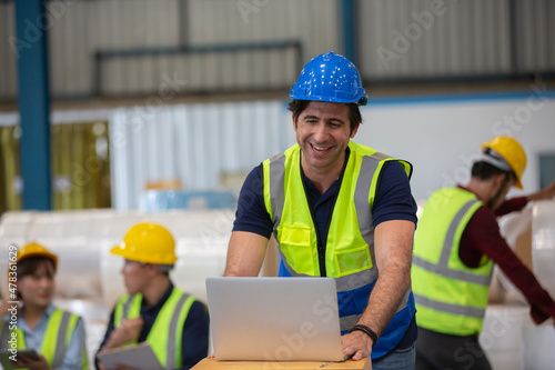 computer, warehouse, logistic, manager, distribution, employee, portrait, group, men at work, construction, engineer, industrial, helmet, industry, factory, work, safety, men at work, people, man, architect, site, working, hard hat, engineering, building, smiling, builder, yellow, supervisor, business