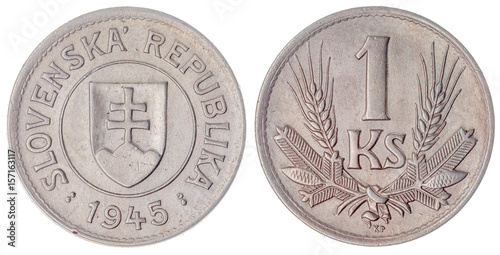 1 koruna 1945 coin isolated on white background, Slovakia