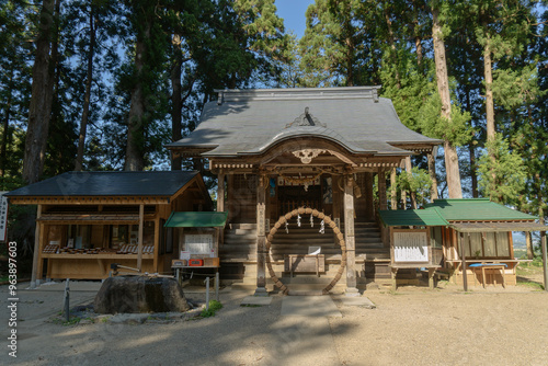 世界遺産・中尊寺/白山神社の拝殿と茅の輪【国指定史跡】日本岩手県・10月