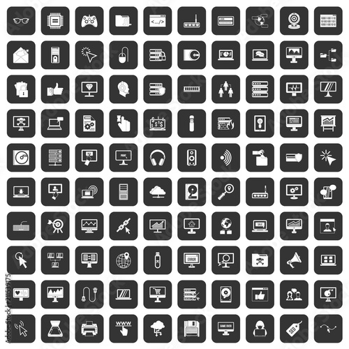 100 computer icons set in black color isolated vector illustration