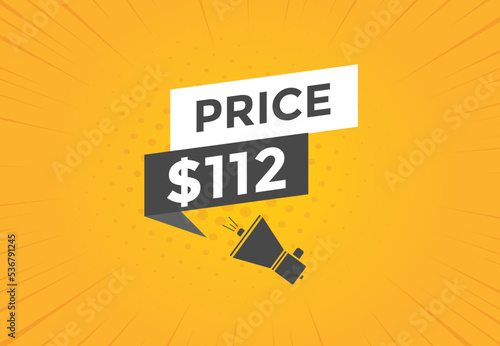 $112 USD Dollar Month sale promotion Banner. Special offer, 112 dollar month price tag, shop now button. Business or shopping promotion marketing concept