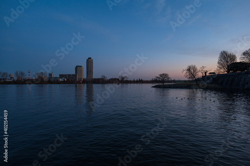 winter, december, landscape, morning, morning, morning sun, light, stream, water surface, water, wave, nature, sunny, tokyo, blue skies, river, building, japan, sunrise, tokyo, house, background, copy space, condo, sky, open air, background, material, house, home, live, lifestyle