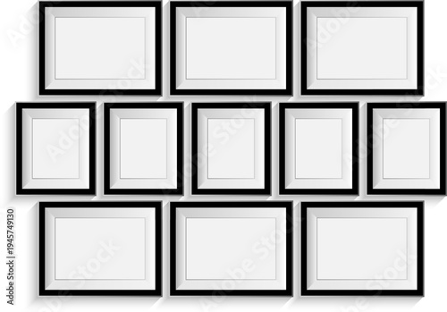 12 Black Picture Frames Grid Gallery Wall Layout Template Vector EPS