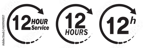 icon, vector, business, logotype, design, arrow, isolated, illustration, concept, clock, template, work, graphic, delivery, time, signs, badge, shop, store, support, day, service, client, symbol, 12, always, anytime, hours, round, turn, 12, shipping, period, limit, urgency, schedule, countdown, alarm, speed, deadline, timer, circle, black, hours, duration