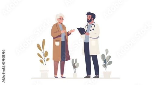 elderly, couple, discussing, their, health, goal, health care, provider, white, background, family, people, woman, children, boy, cartoon, illustration, love, children, vector, business, smile, father, mother, man, happiness, standing
