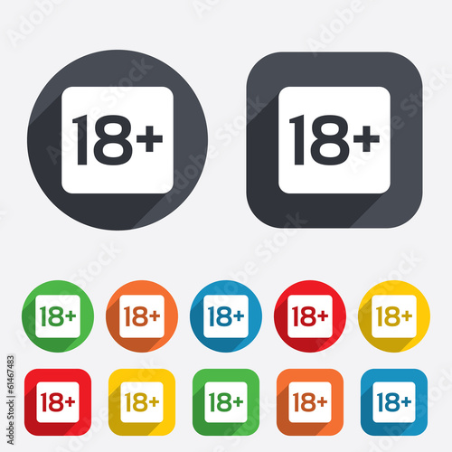 18, plus, adult, content, only, age, limit, 18, year, icon, signs, buttons, symbol, flat, label, mark, token, shape, creative, quality, stamp, concept, vector, badge, seal, art, graphic, illustration, pictogram, geometric, app, yellow, round, circle, square, subway, style, colourful, template, black, set, red, shadow, background