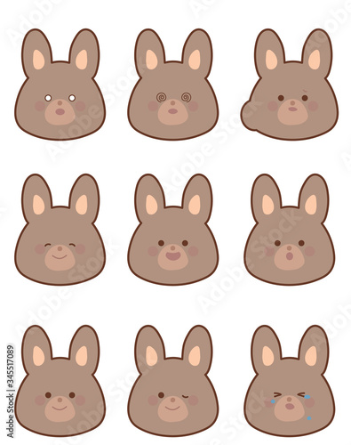 variation, set, plural, face, expression, emotion, resent, smile, smile, cry, sweet, pretty, animal, creature, personification, character, children, children, illustration, vector, children, graphic, pet, pose, rabbit, rabbit