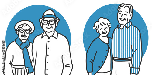 2組の笑顔の老父婦のイラストセット