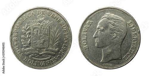 2 Bolivares of Venezuela coin of the year 1967 representing the coat of arms.