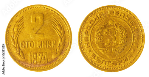 2 stotinki 1974 coin isolated on white background, Bulgaria