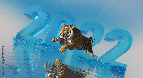 tiger, cat, water, 2022, new, year, blue, background, nature, three-dimensional, animal, wild, teeth, hunter, expression, illustration, dangerous, character, ravenous, wallpaper, zoo, mammal, paw, predator, roar, strong, large, endangered, danger, composite, clip art, bite, attack, wildcat, wildlife